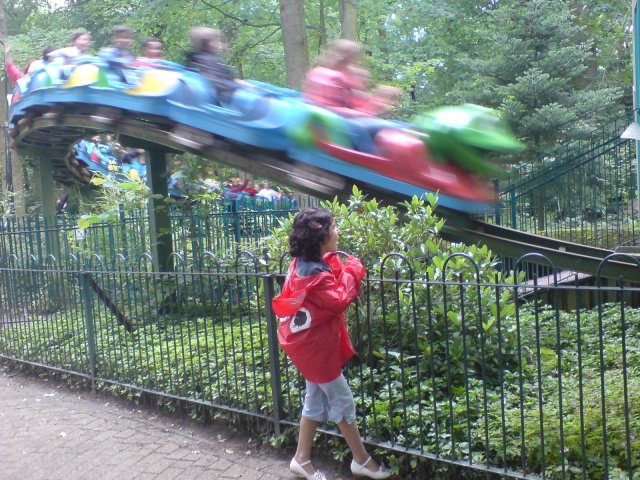 In fact, most run back to the entrance. The frog roller coaster is the perfect start to a roller coaster career. The construction of the rollercoaster kikkerachtbaan was a real puzzle as all the trees were spared. He goes fast and fast, but he is not scary for kids with a bit of guts.
